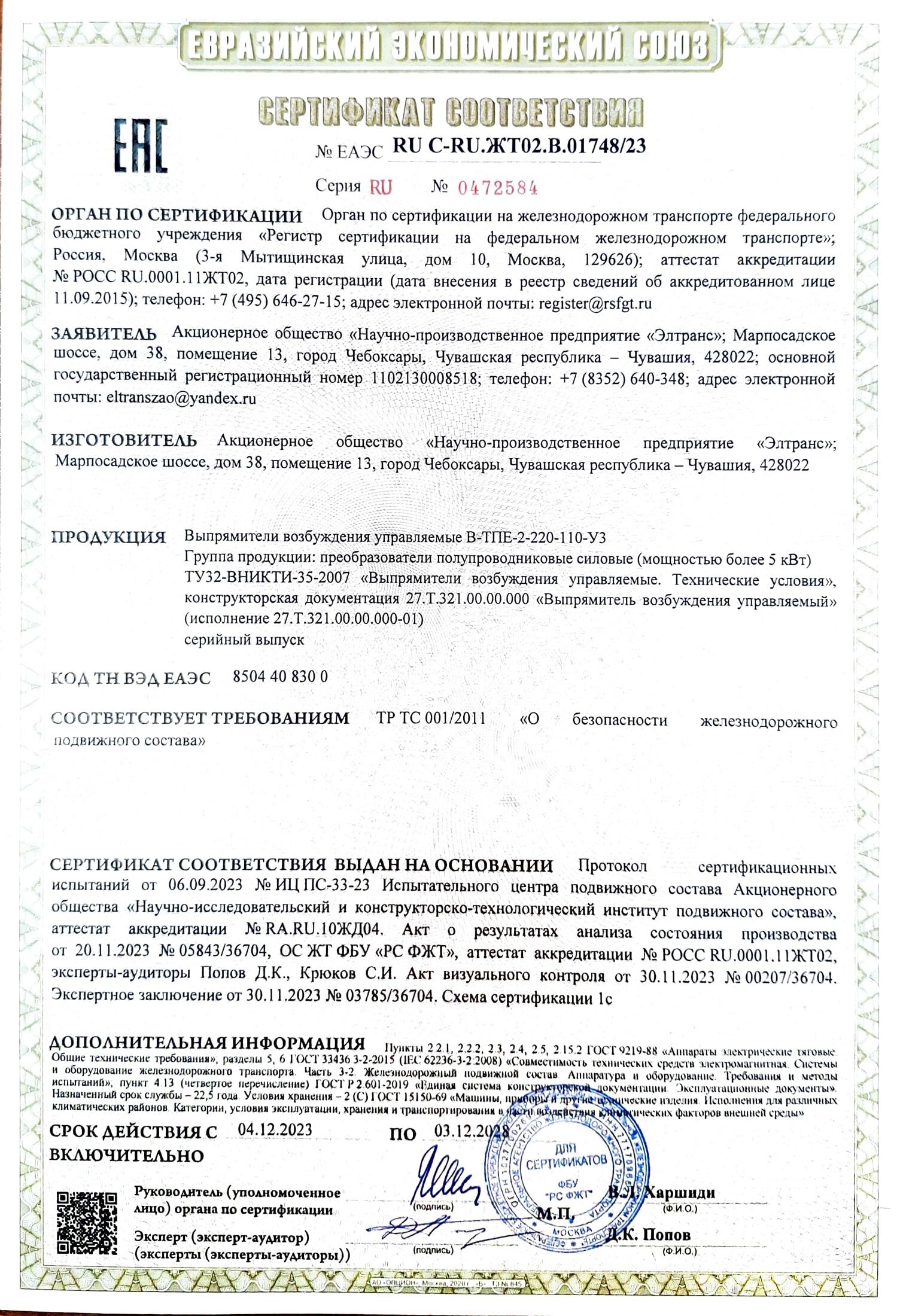 Почтаeltranszao@yandex.ruТелефон8 8352 64 03 48 - приемная