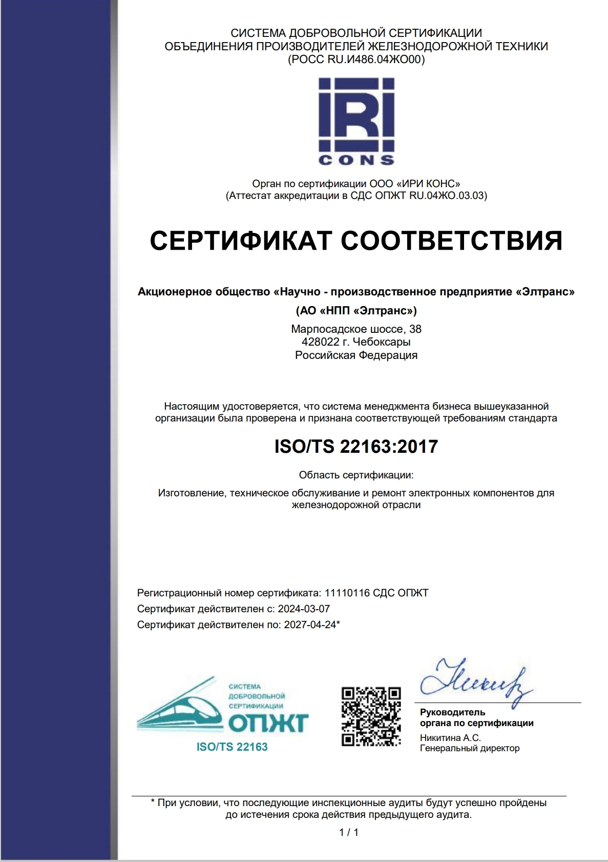 анализирует деятельность и повышает результативность системы менеджмента бизнеса с целью их постоянного улучшения на соответствие требований стандарта ISO/TS 22163:2017 и ГОСТ Р ИСО 9001-2015 (ISO 9001:2015).